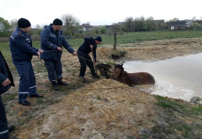 Волинські «надзвичайники» врятували з ями коня