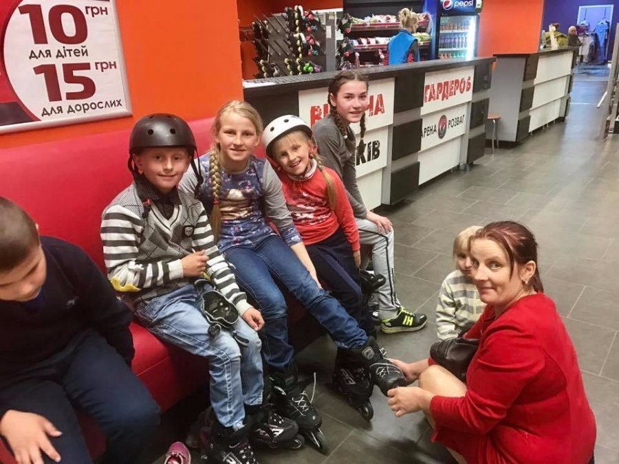 Тож, 2 пари роликів отримала сім'я Дмитра Чернухи з села Поступель Ратнівського району. «В Діми 5-ро дітей!!! Він воював сапером у 2015-2014 роках в складі 308 окремого батальйону. Якраз в ці дні Чернуха проходе медкомісію – вирішив підписати контракт з ЗСУ і повернутися захищати Батьківщину... До речі Дмитро теж став на ролики вперше зі своїми дітками і підкорив їх ))», – розповідає Попова.