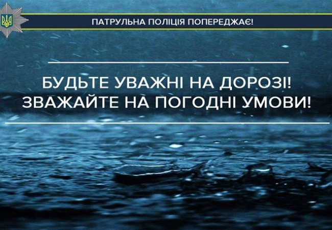 "Зверніть увагу, що дорожнє покриття під час дощу - вологе і з залишками пилу та бруду, воно створює небезпеку під час різкого маневрування чи гальмування.