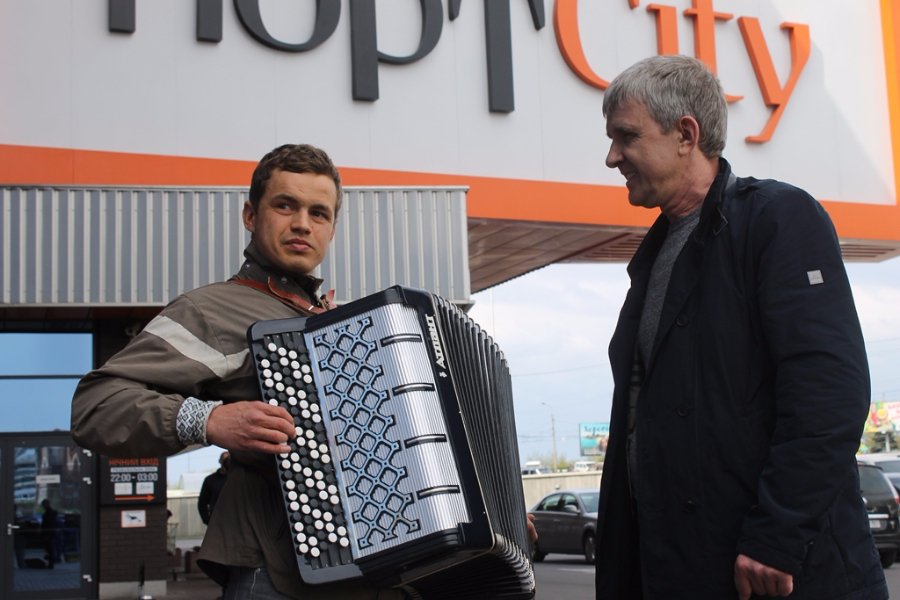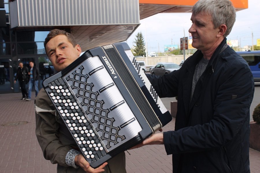 Тож в.о. директора ТРЦ «ПортCity» Володимир Шаповалов від імені адміністрації торгово-розважального центру вручив Сергію новий баян.