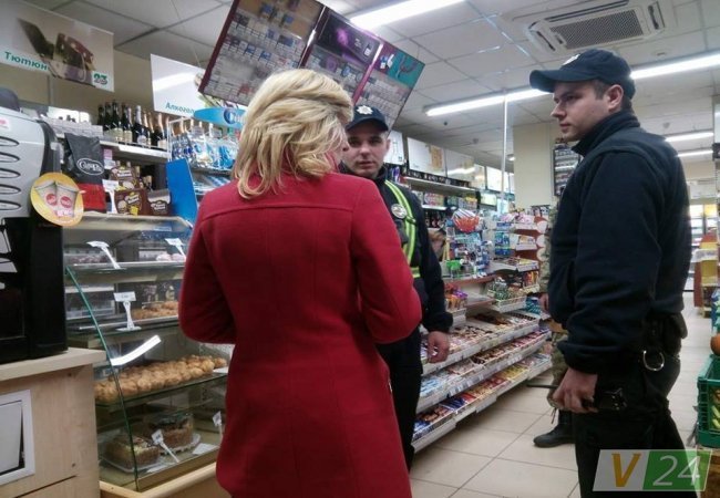 Поки поліція з’ясовувала, чого скандалять нетверезі перехожі, з магазину вибіг продавець і вказав на жінку в червоному пальто, повідомивши, що вона вкрала батончики. Виявилося, факт викрадення батончиків зафіксувала камера спостереження в магазині.