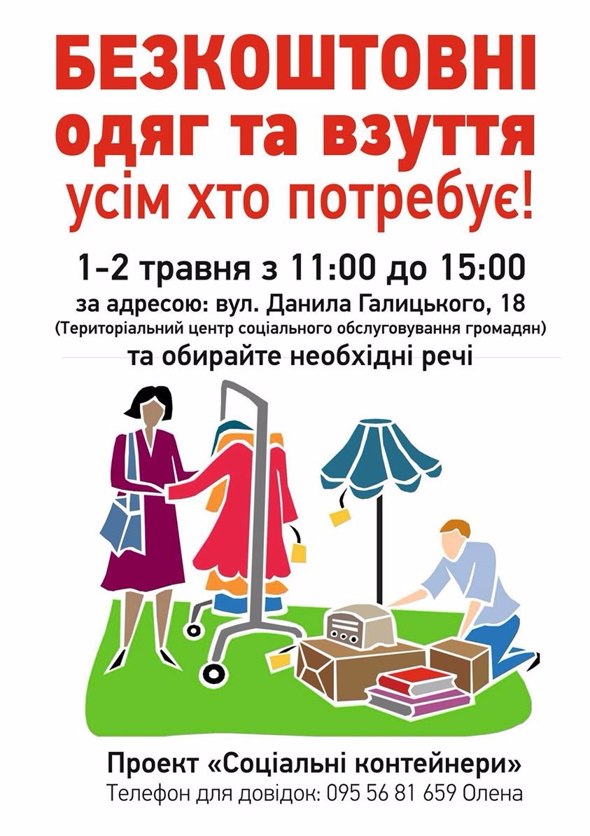 Прийти і вибрати собі одяг можна буде 1-го і 2-го травня з 11:00 до 15:00 год. у Терцентрі соцобслуговування громадян, що знаходиться за адресою: вулиця Данила Галицького, 18.