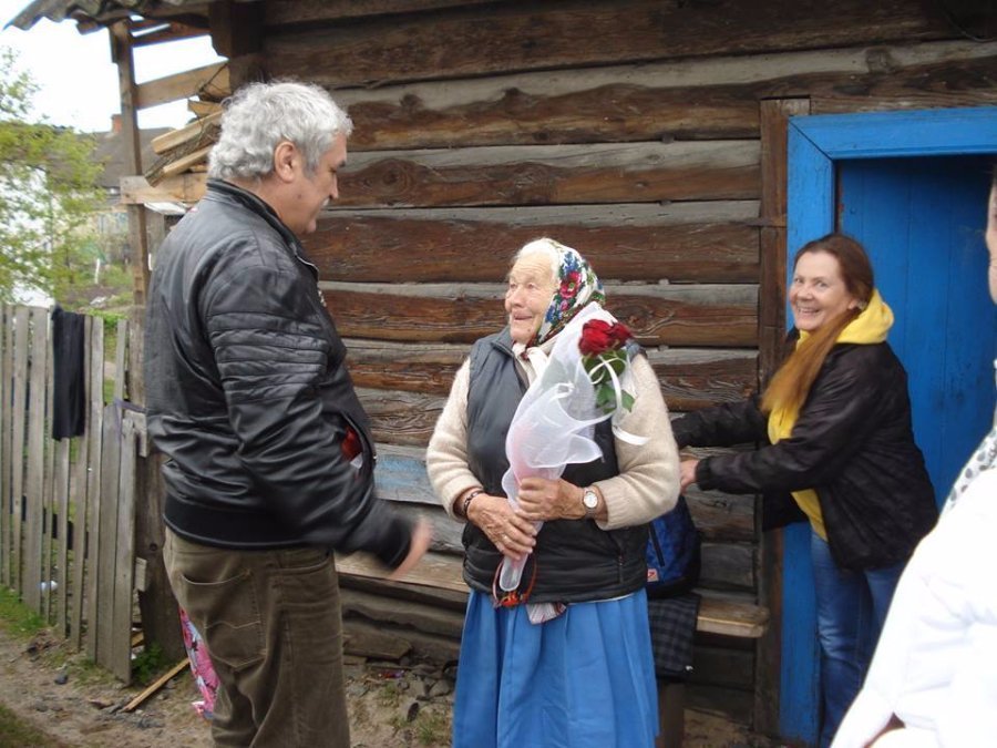 Письменник Василь Шкляр, перебуваючи на Волині, особисто привітав упівку із Ковельського району Ганну Зелену.