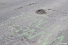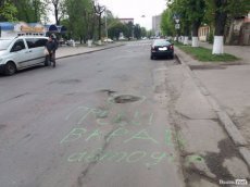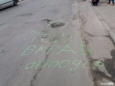 Поруч з ямами написи - "Гроші вкрав автодор", "Гроші вкрали" та подібні.