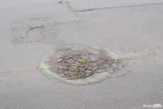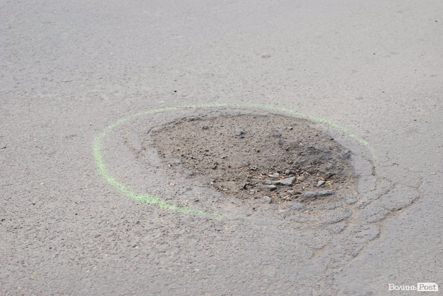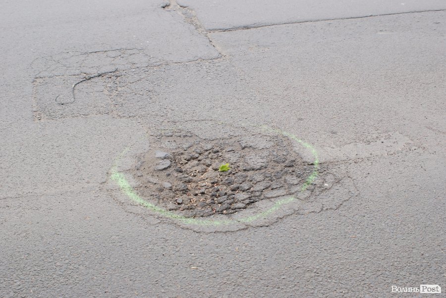 У Луцьку ями на декількох дорогах обмалювали зеленою фарбою.
