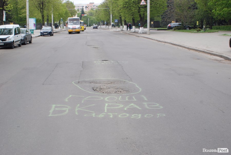«Гроші вкрали»: У Луцьку обмалювали ями на дорогах