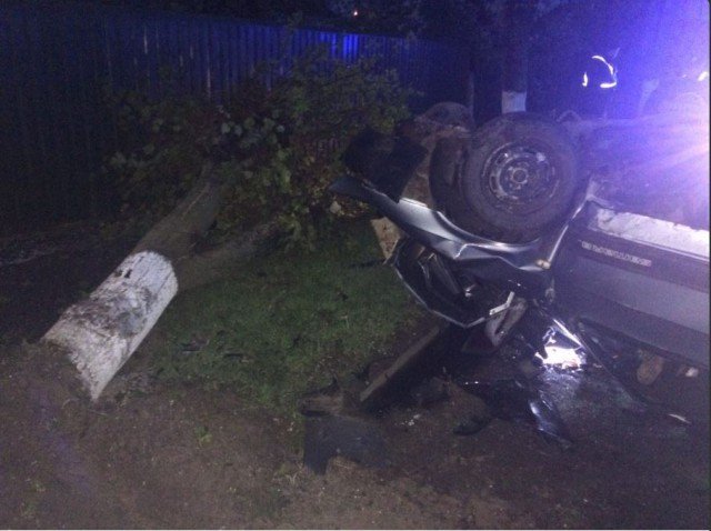 Так, автомобіль «ВАЗ» на вулиці Чернишевського в’їхав у дерево. Від удару автівка перевернулася.