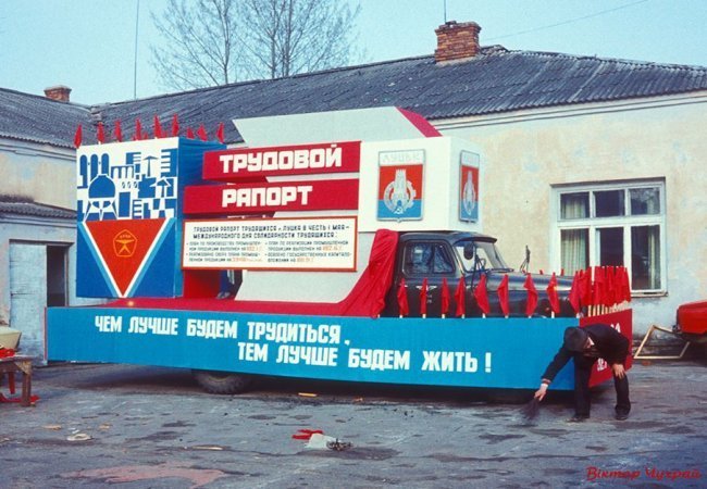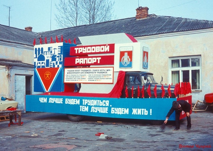 «Традиційно - фото з історії, 1 травня з 1985 року. У цьому році Луцьк відзначав 900-річчя, тому демонстрація була достатньо пафосна і святкова. Звичайно, було багато різної ідеологічної дурні, але у це ніхто не вірив, був просто вихідний, ми були молоді і для нас море було по коліна! А культура, художній комбінат ішли останніми уже трохи під «мухою. Подивіться, тут йшли і ідейні комуністи, і прості люди. Може, хтось себе чи знайомого знайде. Одним словом, було багато цікавого, особливо увечері, після парку. Навіть міліція у витверезник практично не забирала «уражених» зеленим змієм!» - йдеться в дописі Петрука.