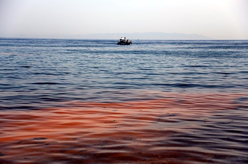Так, у морській воді близько до берега біля Текірдаґ у Східній області Мармурового моря дивні смуги помаранчевого кольору можна побачити неозброєним оком.