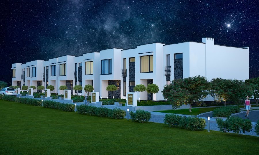 Загальна площа таунхаусу - 137,64 кв.м., житлова площа - 66 кв.м. В кожному будинку – по 4 житлових кімнат, два санвузли, велика тераса.