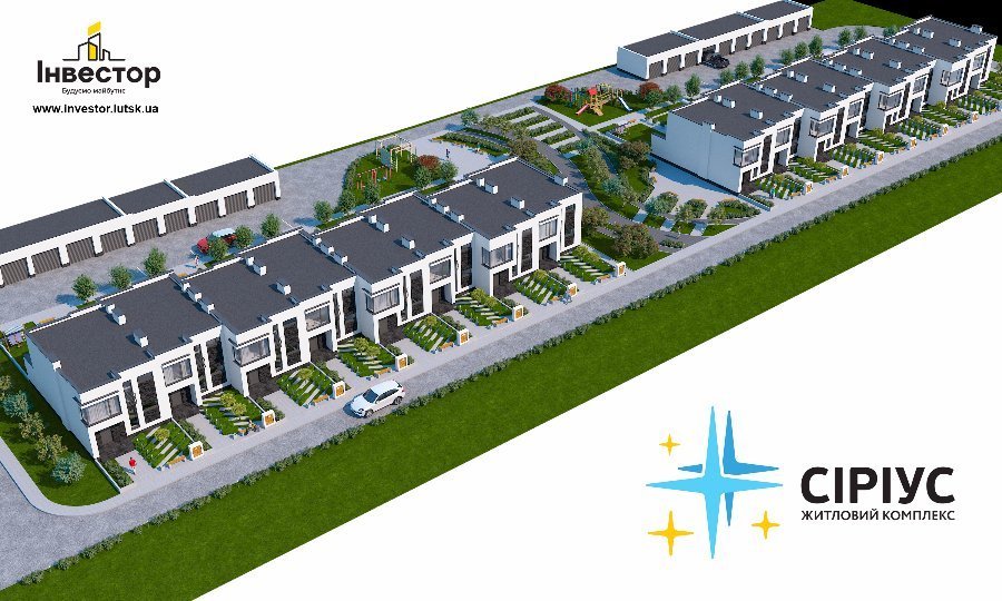 ЖК «Сіріус» налічуватиме 16 двоповерхових будинків з власною прибудинковою територією та паркомісцем. Також тут буде 20 гаражів.