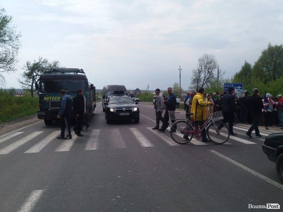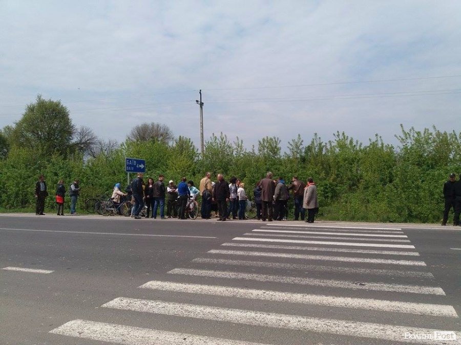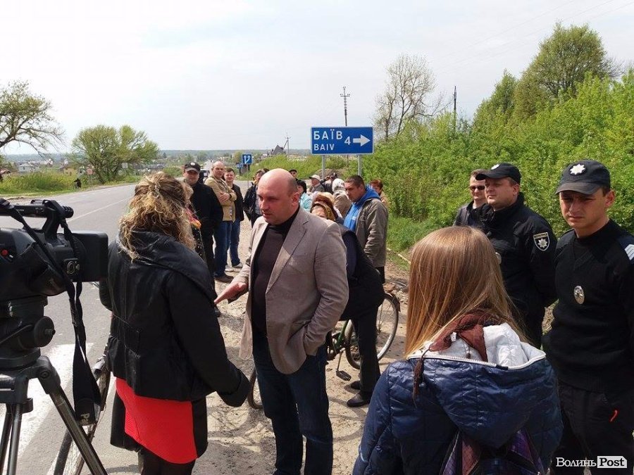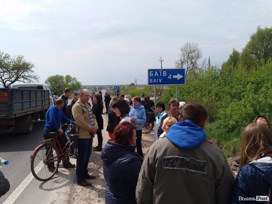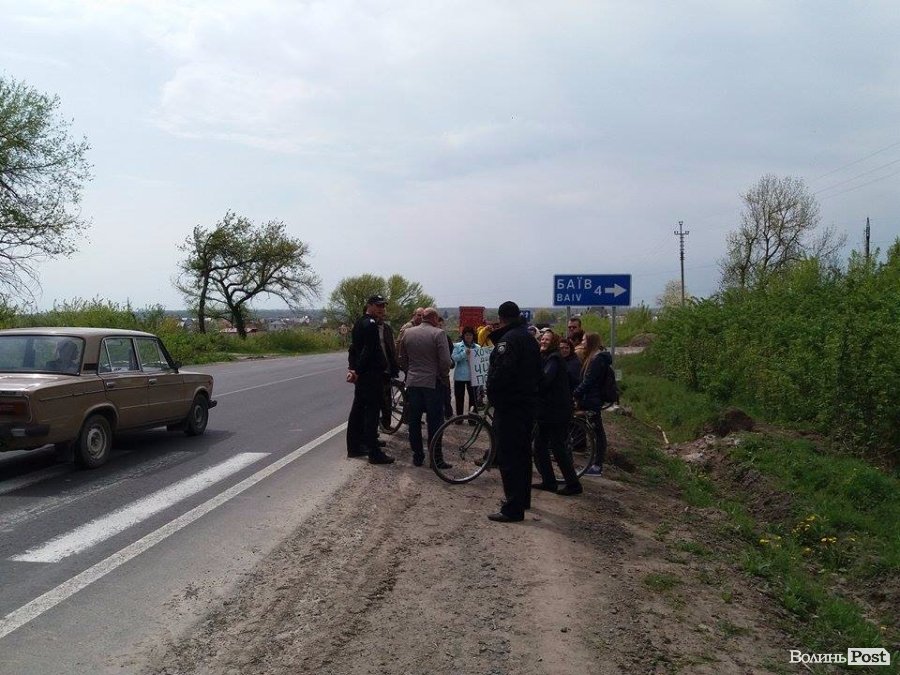 Таку акцію 4 травня влаштували місцеві мешканці біля повороту з траси на села Баїв і Городище, перед селом Гірка Полонка.