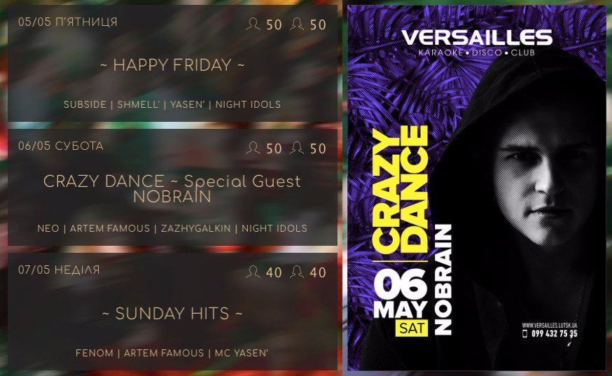 Розважальну програму на 3 дні вихідних підготував улюбений лучанами «Версаль».