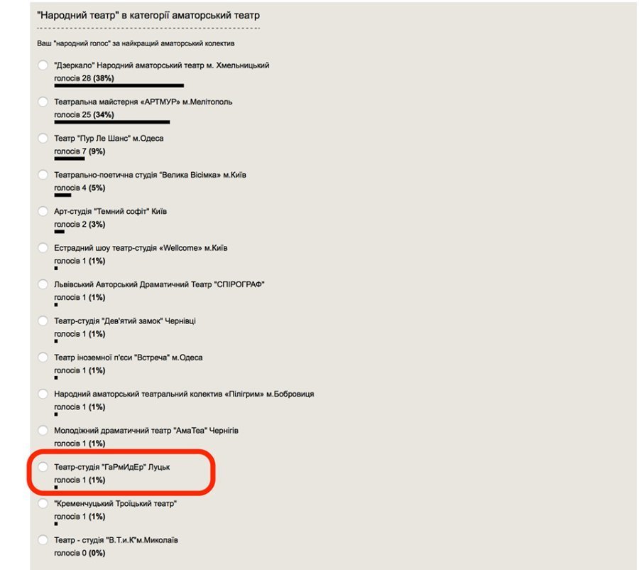 2. Знайти розділ "Народний театр" в категорії аматорський театр