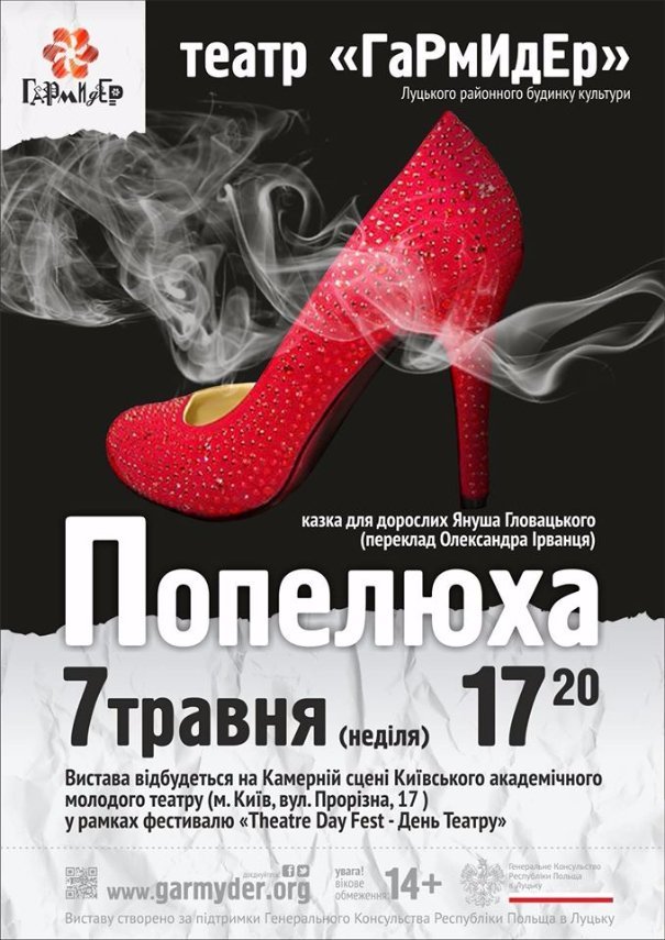 "Окрім цього дивіться нашу виставу за тим же посиланням онлайн о 17:20 сьогодні, 7 травня. Театр "ГаРмИдЕр" уперше виступить на сцені "Молодого театру" із показом вистави "Попелюха" й це покажуть у прямому ефірі", - кажуть театрали.