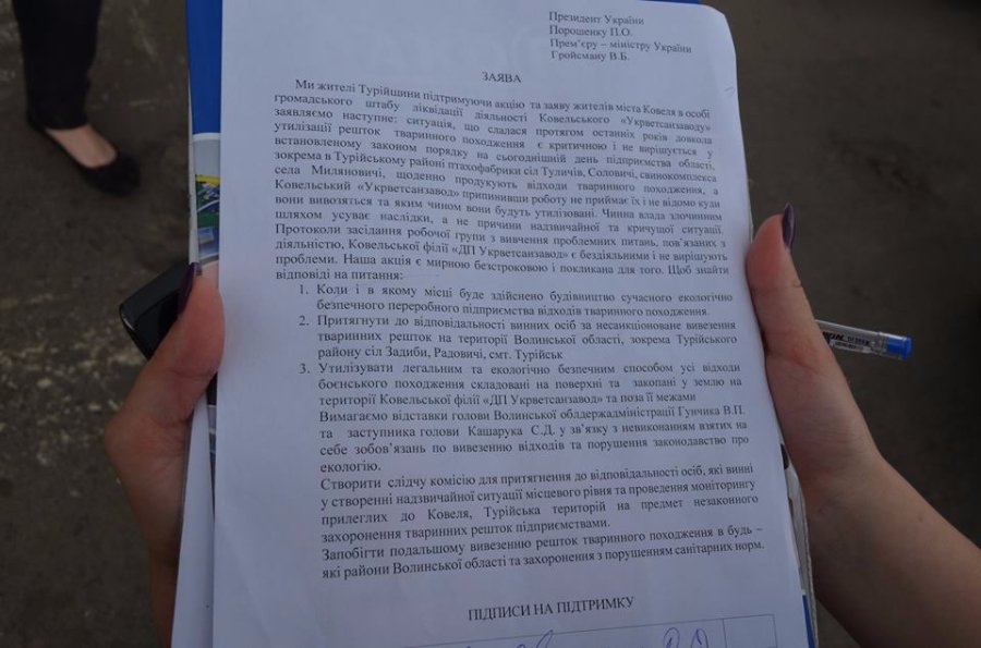 7 травня турійчани вийшли на акцію протесту проти розміщення на території Турійського району тваринних відходів Ковельського ветсанзаводу.