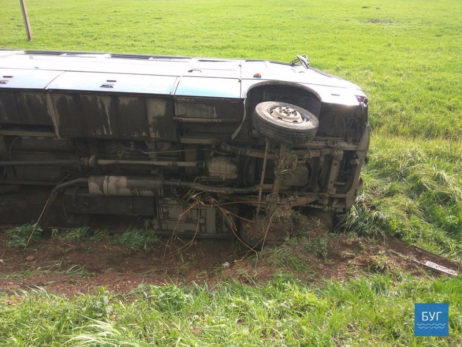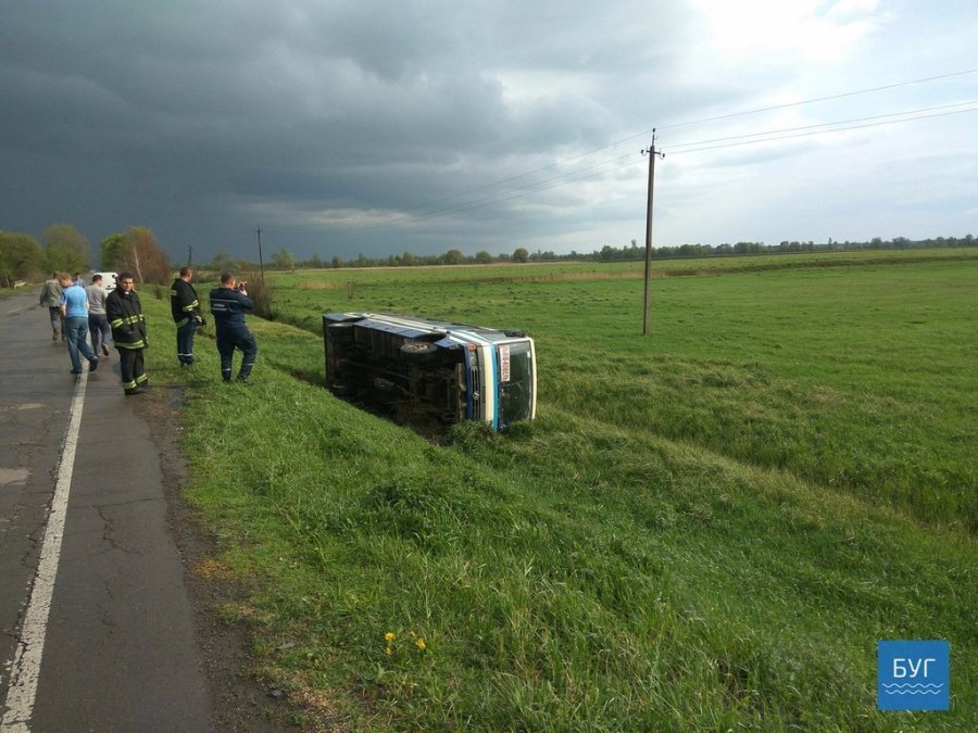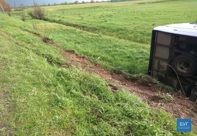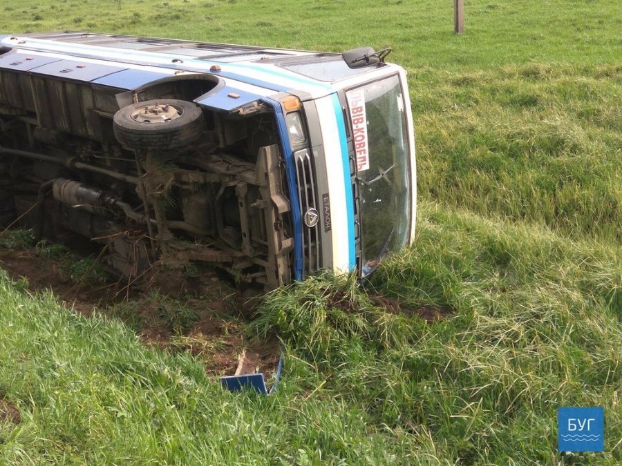 Після цього, автобус злетів в кюветі та перекинувся на бік.