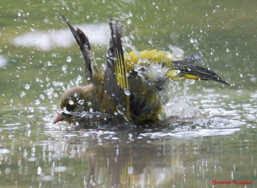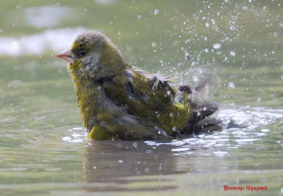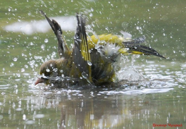 В об'єктив луцького фотографа Віктора Чухрая втрапив зеленяк, який купався.