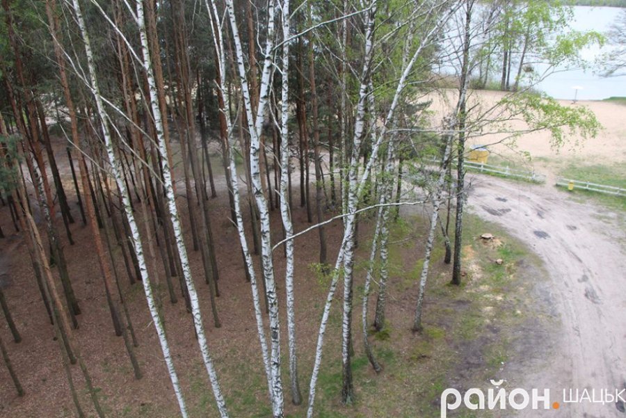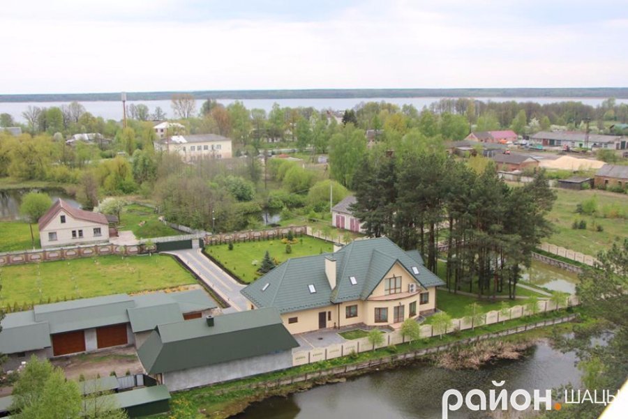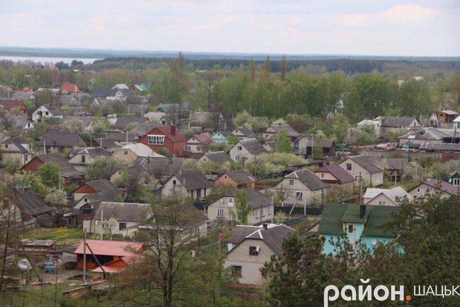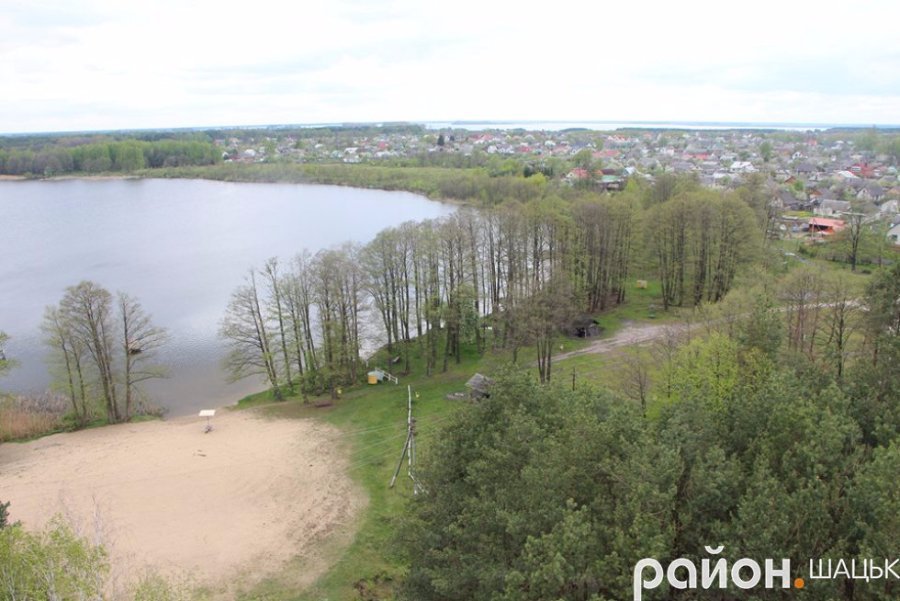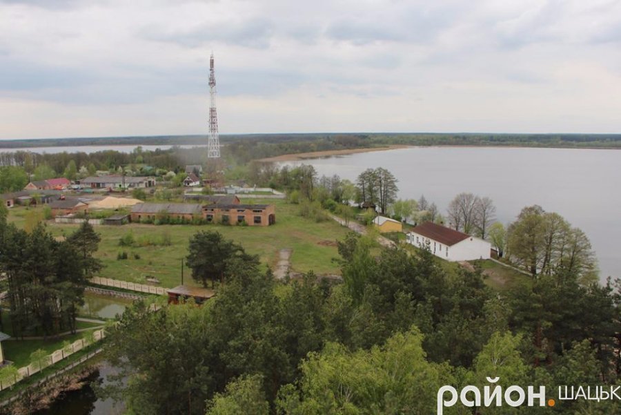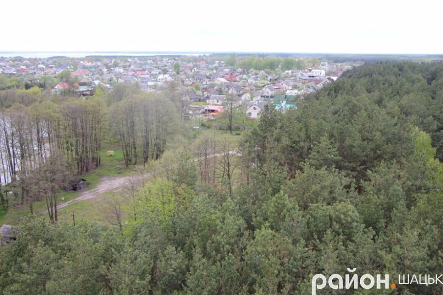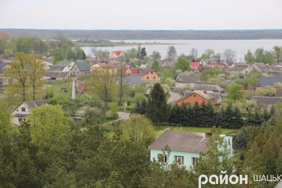 "Проте на них вдосталь кольору, чистоти і свіжості. Можна побачити три озера: Світязь, Люцимер і Велике Чорне, ліси і поля, куполи храмів, Шацький лісовий коледж і школу, державні установи, районну лікарню, селищний стадіон, дороги та барвистий килим з житлових будинків.
