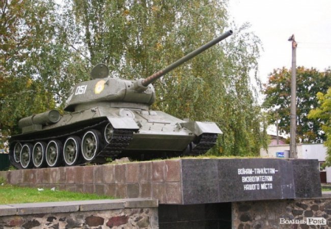 У результаті дорожньо-транспортної пригоди, що трапилася у Володимирі-Волинському, автомобіль ІЖ зіткнувся із танком, який височіє на постаменті.