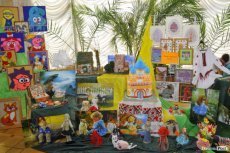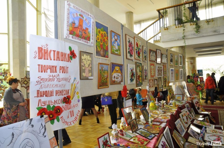 У фойє театру діяла виставка творчих робіт учнів шкіл, де були представлені різноманітні цікаві роботи юних лучан.