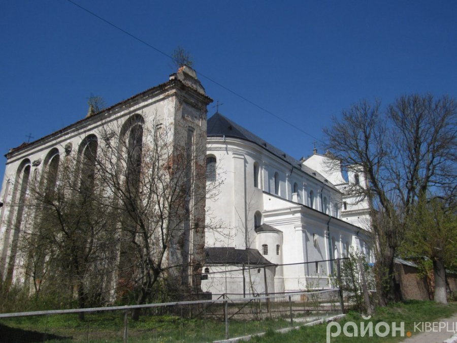 За словами місцевого краєзнавця Анатолія Гури, який усе життя присвятив дослідженню родини Радзивіллів, для католицьких храмів це абсолютно не типово. Цікаво побачити тут і невеличкий притвор збоку. На думку пана Анатолія, наприкінці XV століття це була православна церква – один із перших кам’яних храмів Волині. Очевидно, що в часи, коли Олика перейшла до Радзивіллів, вони перебудували її на молільник. У такому вигляді вона проіснувала декілька десятків років.