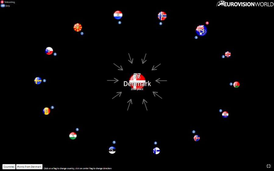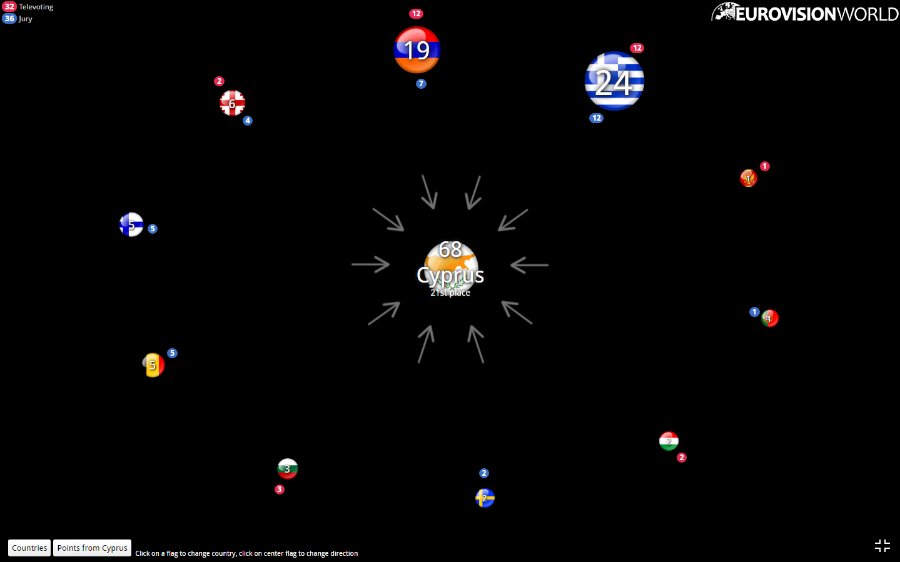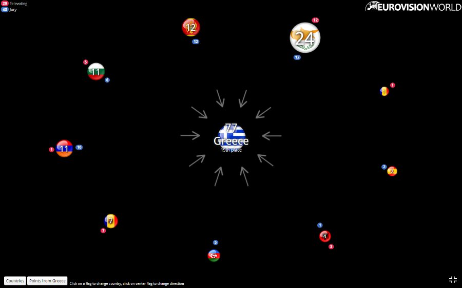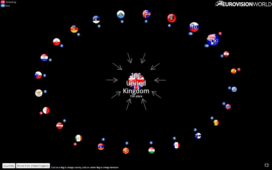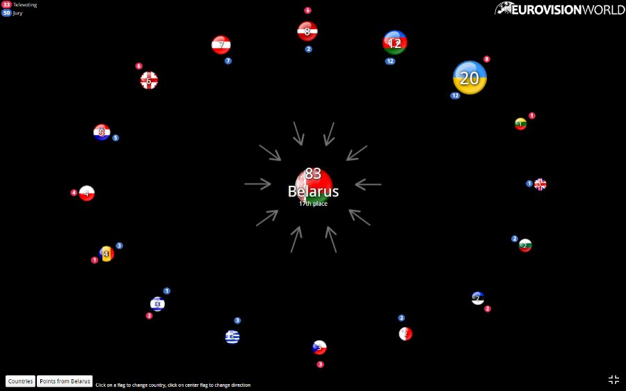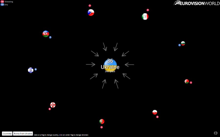 Щоб бачити, яка країна ховається за прапором, перейдіть на сайт Eurovisionworld.com.