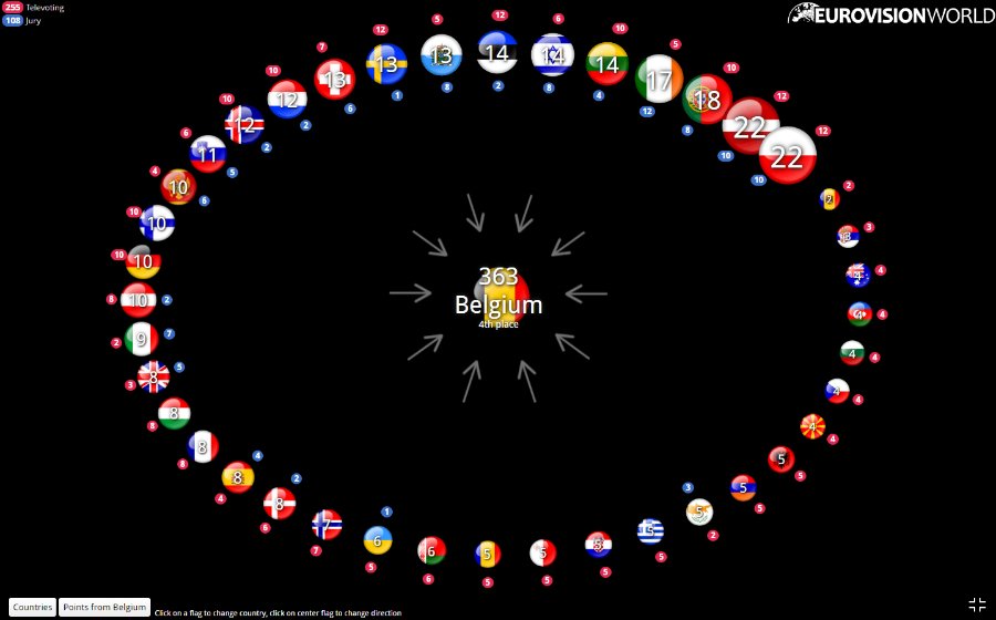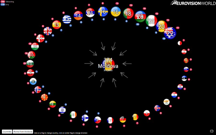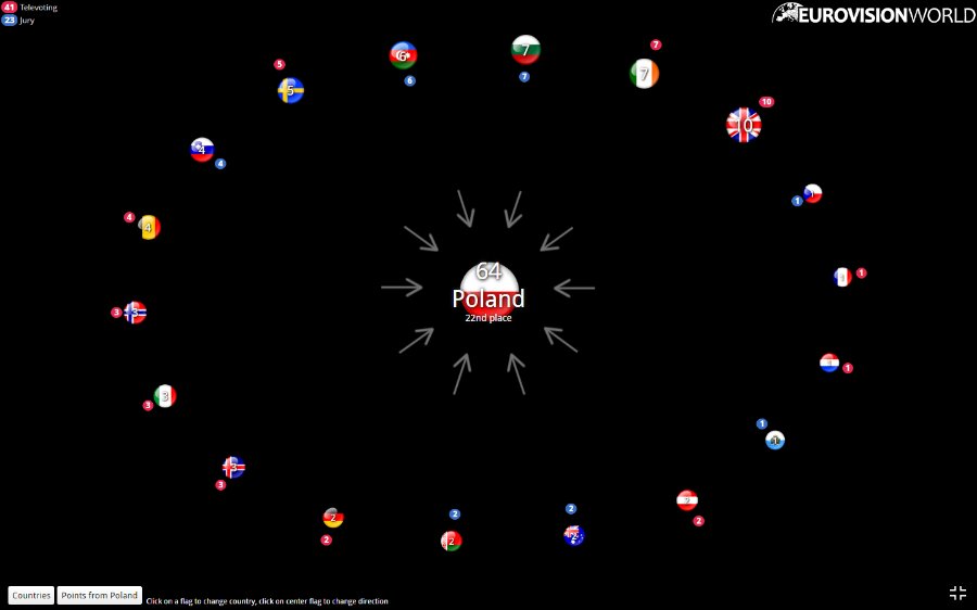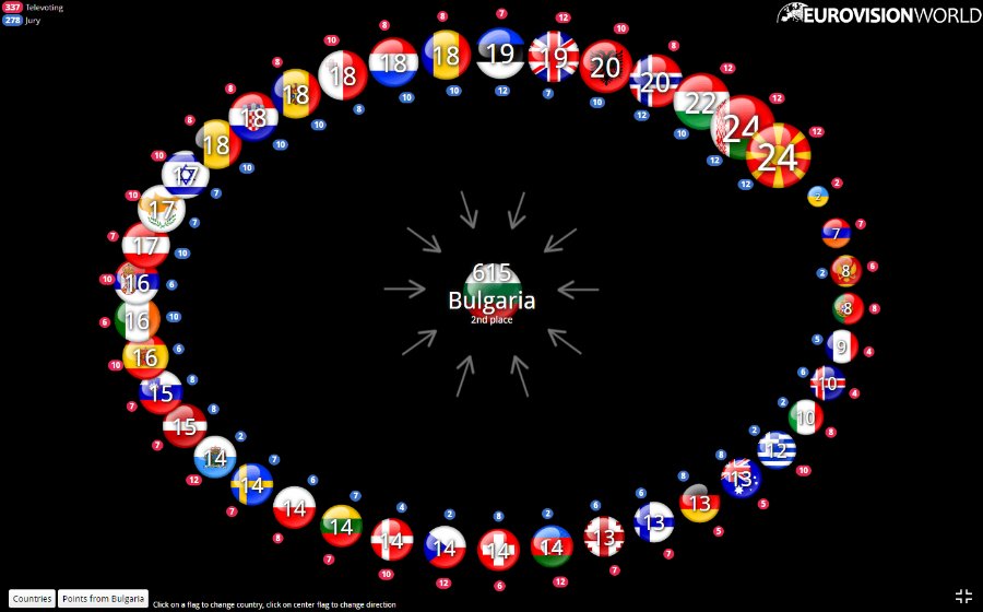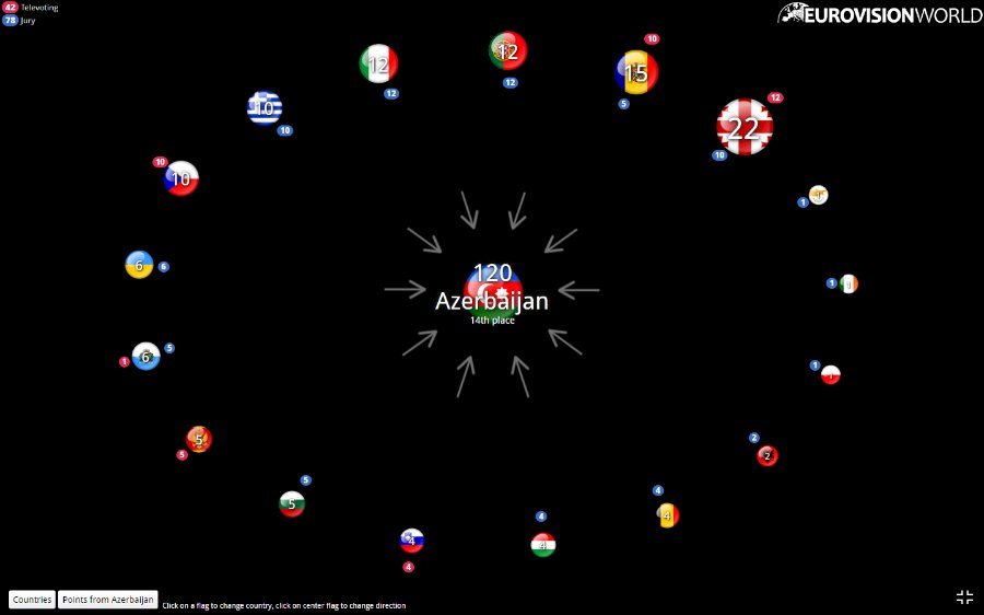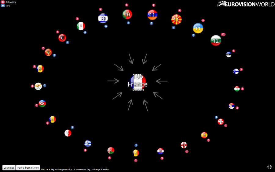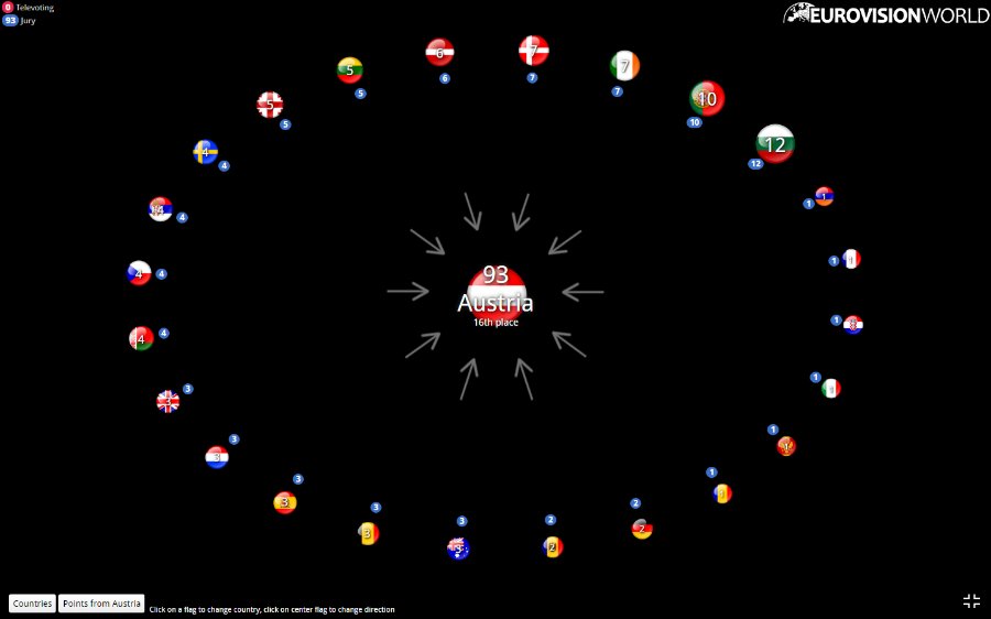 Щоб бачити, яка країна ховається за прапором, перейдіть на сайт Eurovisionworld.com.