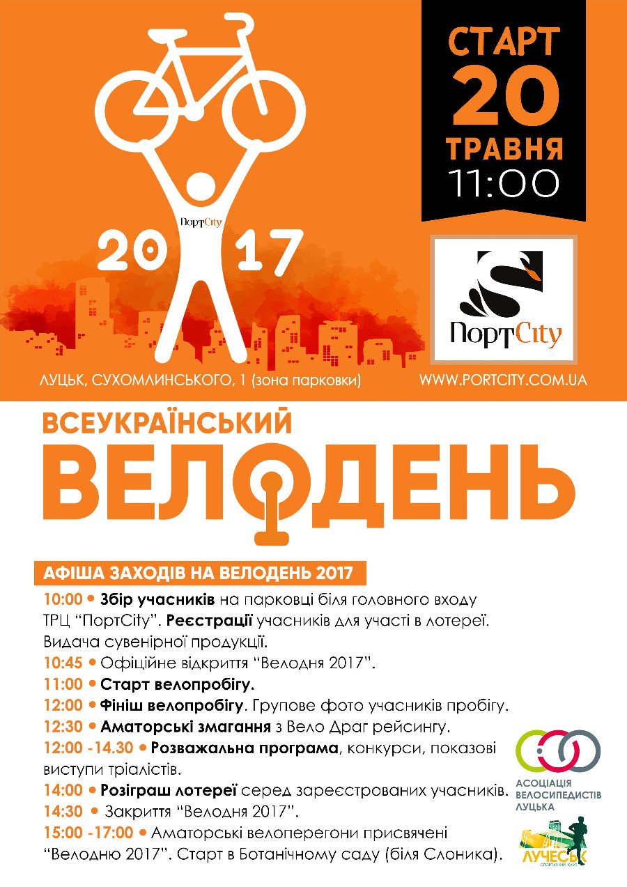 У ТРЦ «ПортCity» 20 травня відбудеться Велодень. На учасників чекає цікава програма і безліч подарунків.
