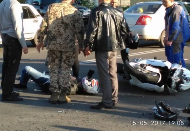 Автор допису пише, що жінка за кермом легковика не пропустила мотоцикл і сталося зіткнення. Водночас він додає, що мотоцикл рухався швидко.