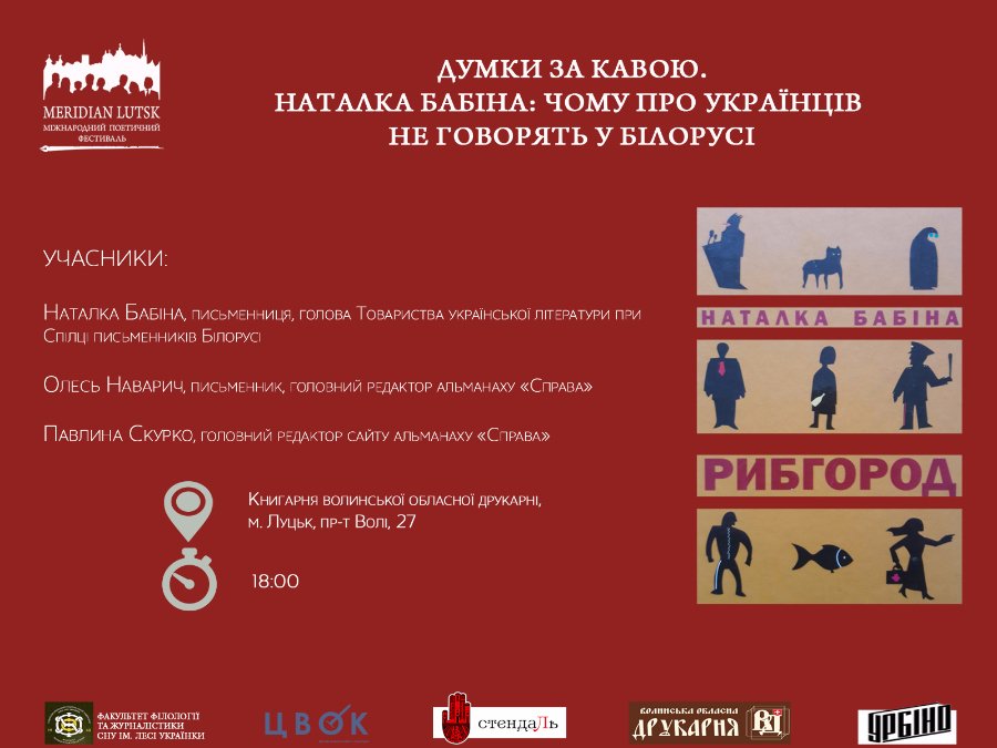 До Луцька завітає відома білоруська письменниця українського походження, уродженка Берестейщини Наталка Бабіна, голова Товариства української літератури при Спілці письменників Білорусі, одна з засновників білорусько-українського альманаху "Справа".