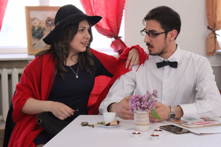 Невимовної колоритності набула історія закоханої пари. Дівчина перевтілилася у вибагливу українську панянку, яка любить тільки вишуканий кавовий напій. Вона й не з проста навідалася до кав'ярні, делікатно натякаючи на симпатію до молодого поляка – Віктора Рибарчука. «В мене тут ще справи», - каже кокетка Катерина Байгота.
