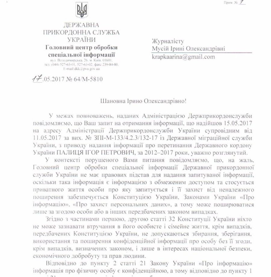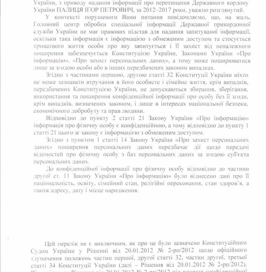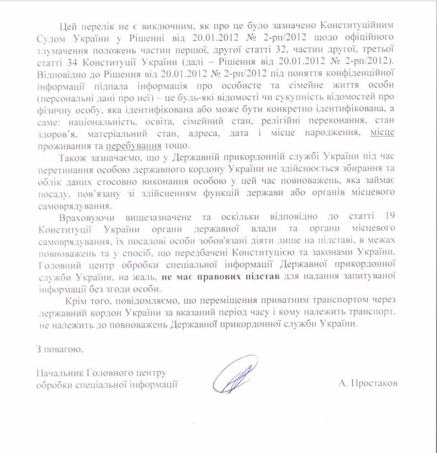 Зі слів Аріни Крапки, у Держприкордонслужбі посилаються на персональні дані, однак інформація щодо персональних даних осіб, які є держслужбовцями, депутатами, тобто здійснюють публічну службу , відрізняється від інформації про персональні дані будь- яких інших фізичних осіб.