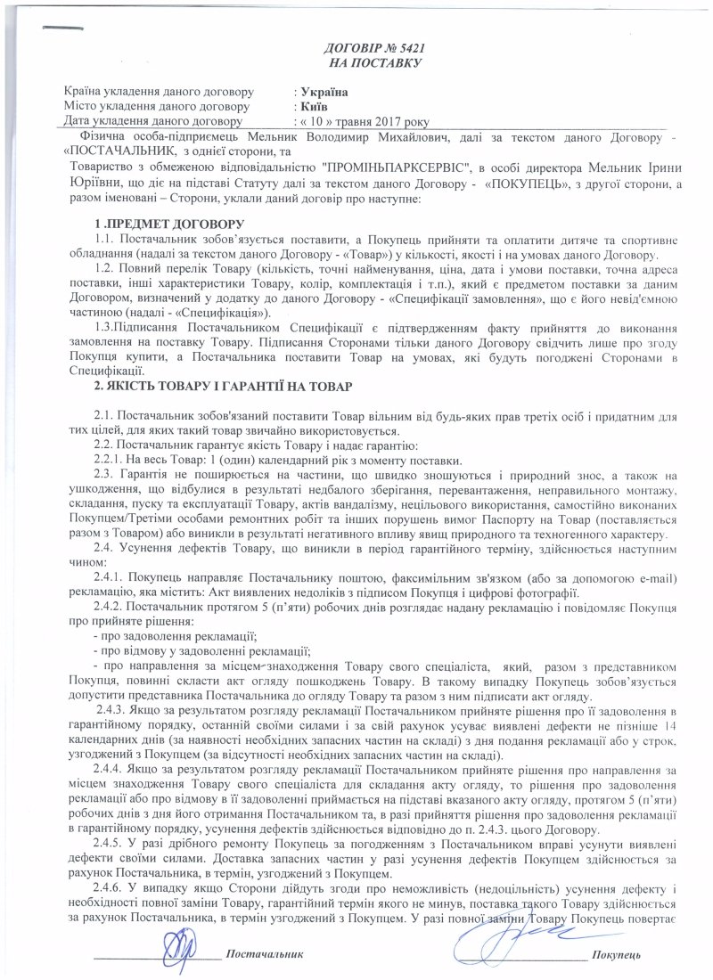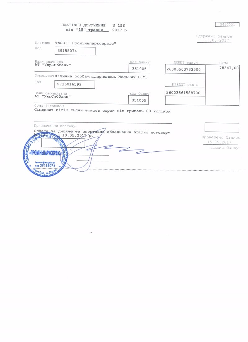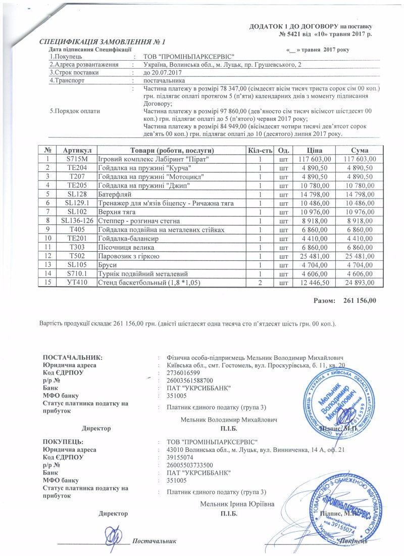На підтвердження своїх слів він надав копію договору та платіжне доручення на закупівлю дитячого та спортивного обладнання для облаштування майданчиків.