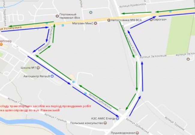 Відповідно до розпорядження міського голови від 23 грудня 2016 р. № 648 “Про перекриття руху транспорту на шляхопроводі на вулиці Рівненській”, у зв'язку з виконанням ремонтних робіт в суботу, 20 травня, з 9:00 до 21:00 буде перекрито рух транспорту шляхопроводом на вул. Рівненській (на ділянці від вулиці Кривоноса до вулиці Мазепи).