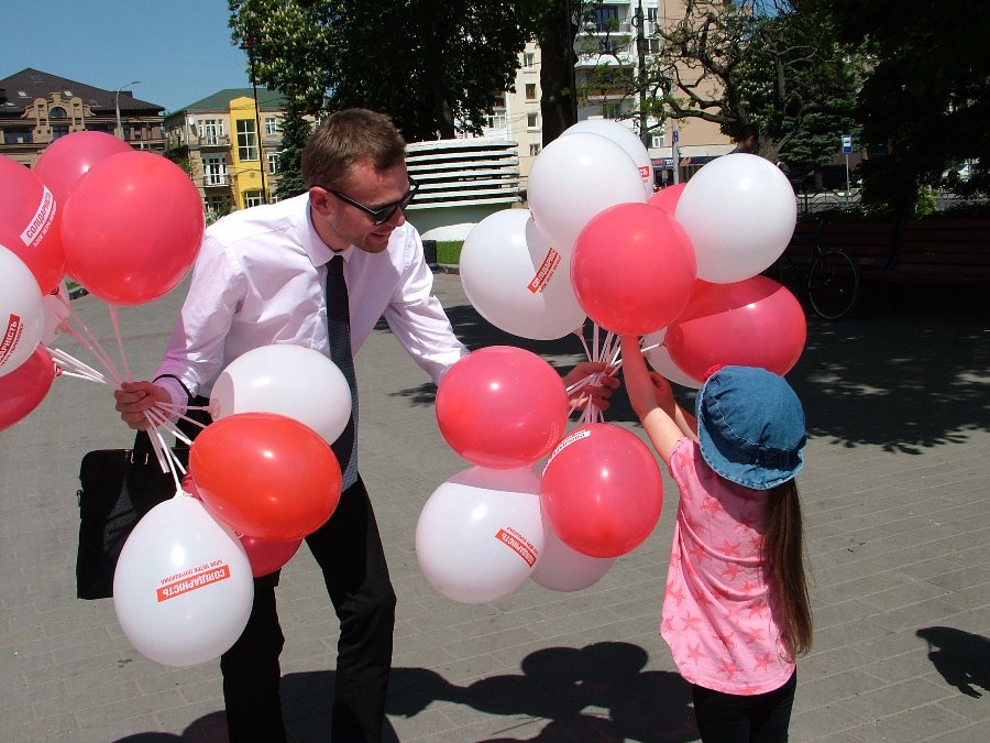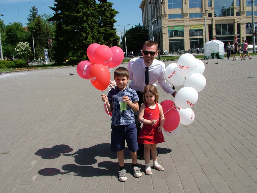 Наймолодші лучани отримали в подарунок від партії повітряні кульки. Дарував дітям радість керівник молодіжного крила БПП «Солідарність» Олександр Новак.