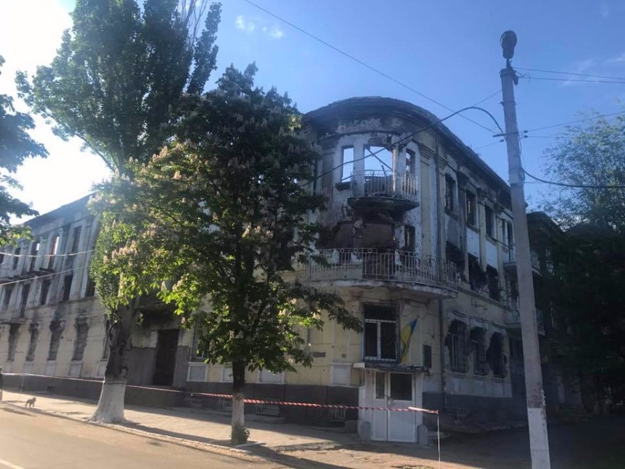 "Місто Маріуполь, будівля МВС зруйнована! 2014 рік, історія з захопленням міськвідділу непроста, але ось такі наслідки!" - написав він у Facebook.