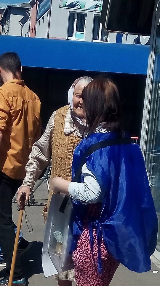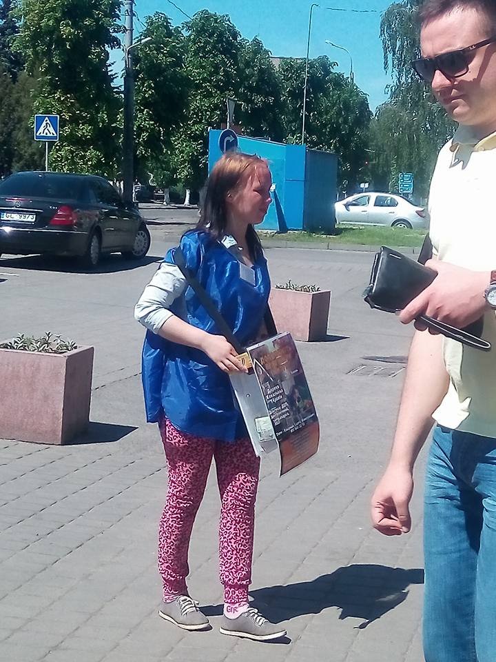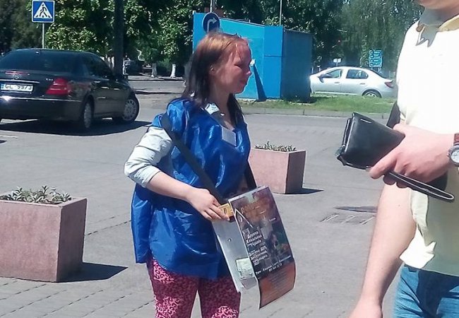 Зокрема громадський активіст Юрій Сілюк оприлюднив світлини, як дівчина у синій манішці збирає гроші у скриньку. Буцімто – на лікування дитини.