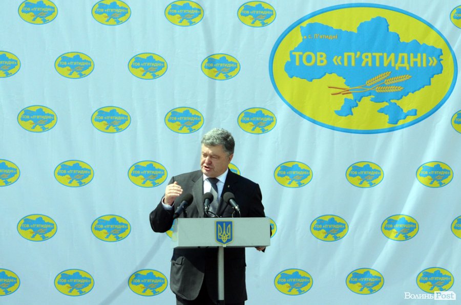 Президент України Петро Порошенко взяв участь у церемонії відкриття новозбудованого насіннєвого заводу в селі П’ятидні Володимир-Волинського району.