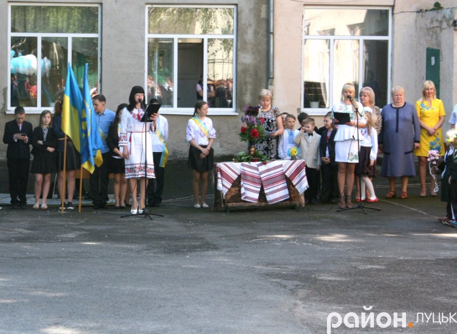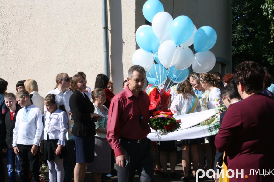 На урочисту лінійку прибув начальник відділу екології Луцькради Анатолій Гламазда, методист управління освіти Луцькради Тетяна Трасковська та директор Луцького підприємства електротранспорту Ігор Грицюк.