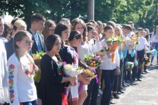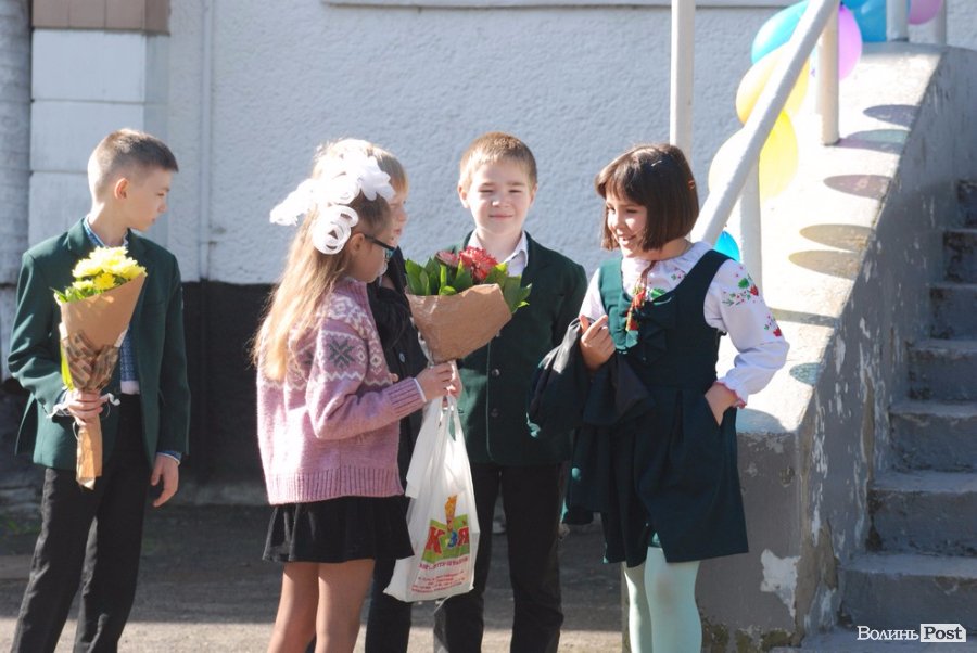 Ще задовго до початку лінійки тут вже метушилося чимало дітей із букетами, ледь не більшими за самих школярів: кожен виглядав улюбленого вчителя, аби вручити своє квіткове вшанування.