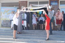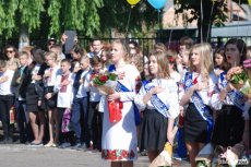 Чи не найповажніше на лінійку крокували «головні» школярі – одинадцятикласники, для яких цей останній дзвоник дійсно останній. Тож за класним керівником вони пройшли коридором із вишитих рушників, який утворили мами, та вишикувалися посередині лінійки. Цьогоріч школа випускає 17-ох школярів.