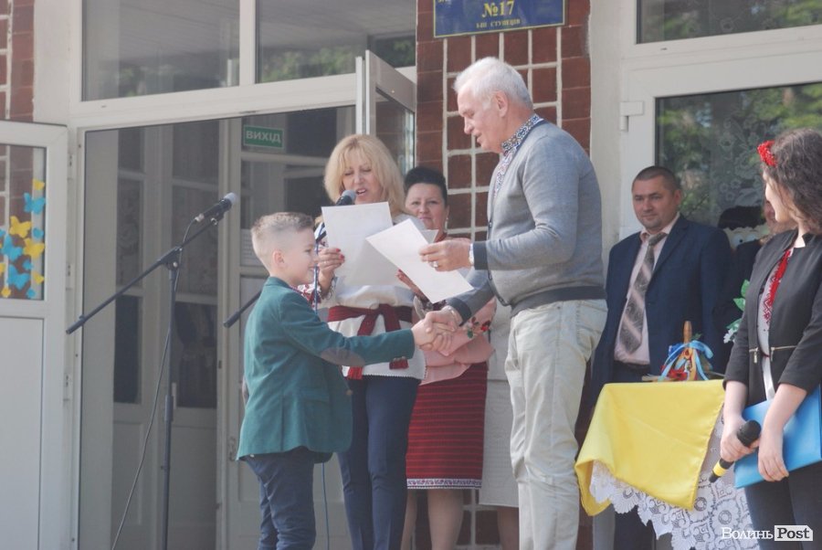 На свято останнього дзвоника завітав депутат міської ради Петро Нестерук, який опікується школою – за його кошт тут харчуюють 15 дітей. Обранець громади зауважив, що знає про інцидент, коли зі школи викрали техніку. Тож у честь свята, аби трохи порадувати школярів та вчителів, він приготував для закладу подарунок. Нестерук подарував школі ноутбук. Випускникам же він побажав легкої дороги у життя.