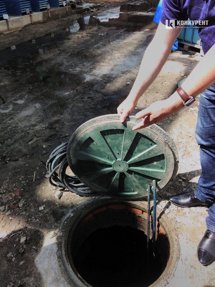 Спочатку показав люк на території підприємства, який є першим місцем, куди відходить мелясна барда. У каналізації руху рідини та запаху не було.