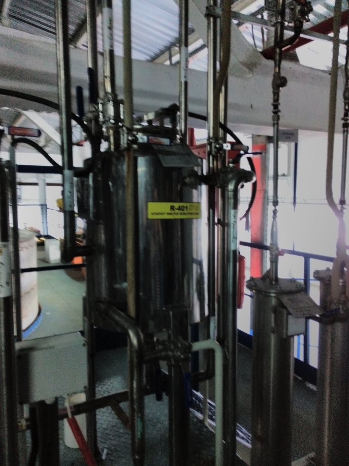 Він показав дріжджеві чани і розповів про суть виробництва. У виробництві біоетанолу використовується цукор, який перебуває в побічному продукті цукрового виробництва – мелясі, яка має темно-коричневий колір. Меляса розбавляється водою, частина іде на вирощування дріжджів, і ці джріжджі потім зброджують іншу частину меляси. Потім вона переганяється і отримуємо бражний дистилят, який укріплюють до 94 градусів, а потім обезводнюють. У кінцевому результаті виходить паливний етанол обезводнений.