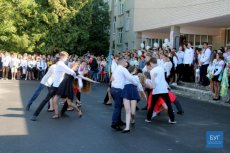 Окрім привітань гостей, перших вчителів та найменших школярів, випускники на згадку про себе подарували танці та виконання пісні.
