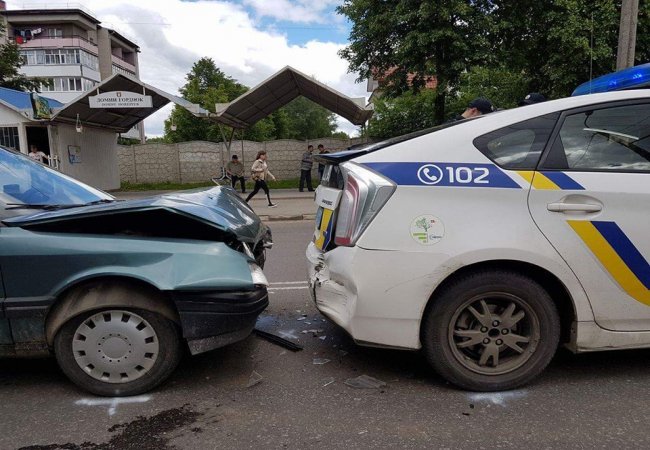 У службовий автомобіль патрульної поліції Toyota Prius врізався легковик Renault.