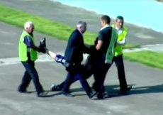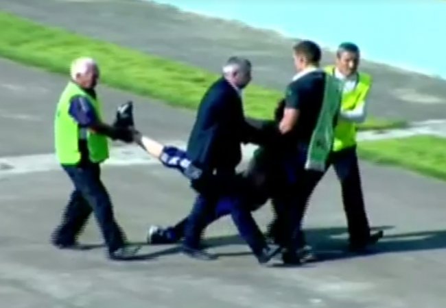 Зрештою стюарди винесли стрікера з ігрової зони на руки й за ноги .