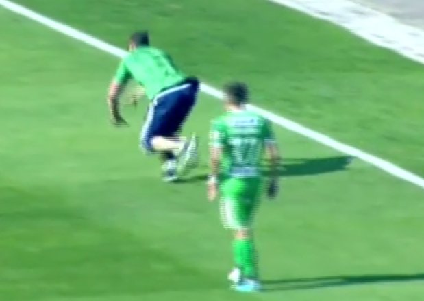 Коли п’яного фаната вивели за бокову лінію, до нього підбіг і ще раз повалив на землю інший прихильник «Карпат» напідпитку, який після цього утік.