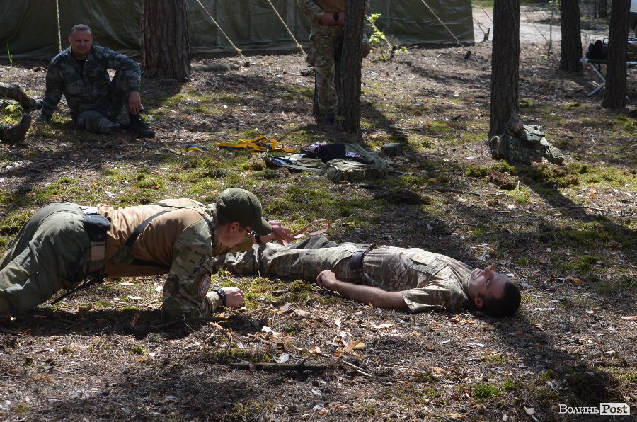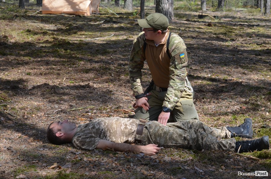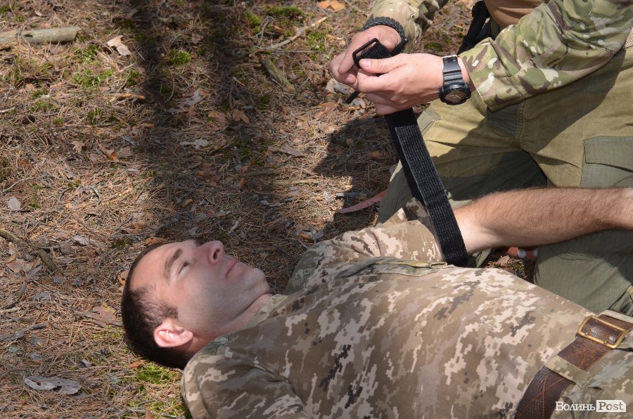 Медичній справі навчав капелан Савич Святослав. Чоловік розповів про основи накладення джгутів, евакуацію із так званої «червоної зони» та основи першої медичної допомоги.